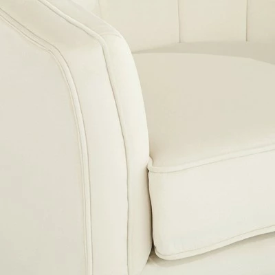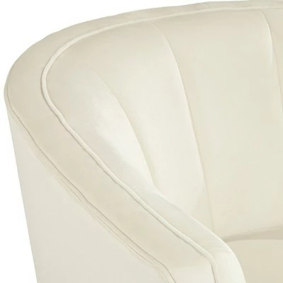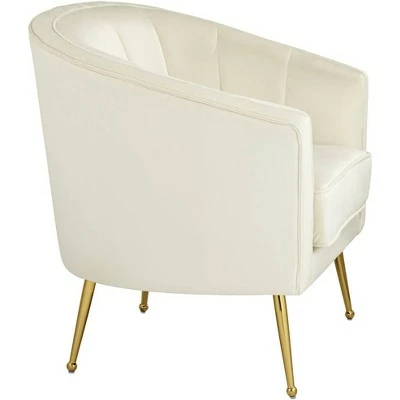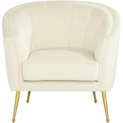 Rich white velvet and sleek gold metal legs are the focal points of the Leighton Mid-Century tufted accent chair. From the 55 Downing Street brand, the design features a stunning combination of tufted white velvet fabric and gold metal legs. Relax and lounge about with ease and in luxurious style.