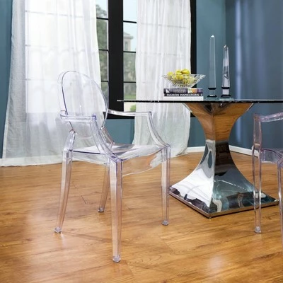 With its crisp shine and clear look, the Atelier Ghost Chair from the Signature Collection by A&B Home Collection transforms a traditional chair style into a sleek, modern statement. Constructed of 100% polycarbonate, the Atelier Ghost Chair offers incredible durability for indoor or outdoor use. Add chic yet comfortable seating to a lavish patio, elegant dining room, or swanky master bedroom. This item belongs to a collection of items created and designed by A & B Home, Inc., a family owned business founded in 1993. A & B Home Inc. is recognized as an international leader specializing in quality products with innovative design for the home decor, furniture, garden, and seasonal product categories.
