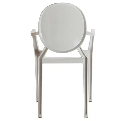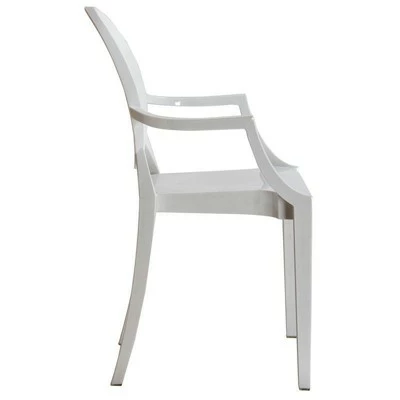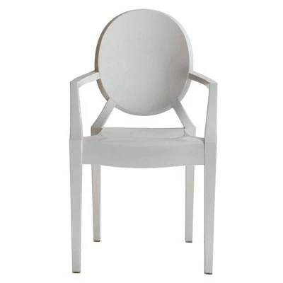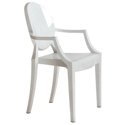 The distinctive Isolde Baroque Chair features clean lines and a glossy white finish for exceptionally versatile appeal. This piece features a modern minimalist interpretation of the classic Louis XVI armchair, an iconic and timeless style that maintains its popularity to this day. This piece is crafted from white polycarbonate for durability and minimal maintenance. This item belongs to a collection of items created and designed by A & B Home, Inc., a family owned business founded in 1993. A & B Home Inc. is recognized as an international leader specializing in quality products with innovative design for the home decor, furniture, garden, and seasonal product categories.