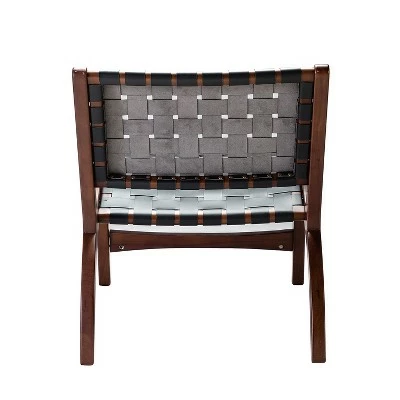 Still struggling to find an appropriate side chair for your home? This ahead of the trend accent chair will not let you down. Featuring a charm that makes people fall in love at first glance, this piece is designed with impressive details. Neatly cutting faux leather woven matches the sleek rubber wooden frame bosating a dramatic contemporary appeal, it must be a centerpiece in any home decor. Adding a touch of aesthetic to your space, its faux leather material is comfortable for skin touch, and the craft of weaving ensures cool breezes pass through freely and reduces heat buildup, creating a perfect spot for relaxation. Although it looks delicate, the seat and backrest features a sturdy construction in good tenacity with integrated curved legs that provides a perfect weight capacity in fact. With a delectable optional hues, it can blend well with your home color scheme, ideal for living room, office room and bedroom.Item Size: 23.5″Wx30″Dx29″HSeat size: 20.5″Wx22.5″Dx16.5″H