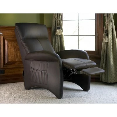 The Addin Recliner from Buylateral will add a sense of style to your living space. Clean line design accentuates the contemporary flair of this sleekly scaled recliner. Upholstered in a soft faux leather, this supportive recliner features padded cushions and headrest, a reclining foot rest along with a side pocket for storing your remote, magazines and more.
