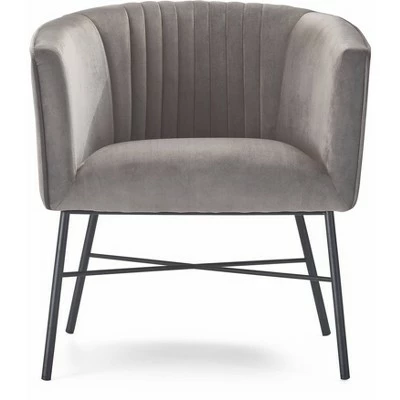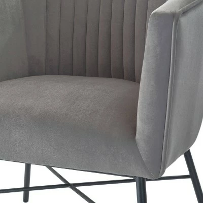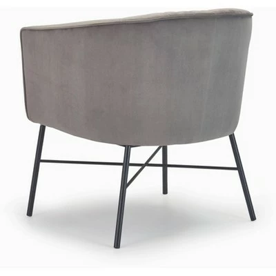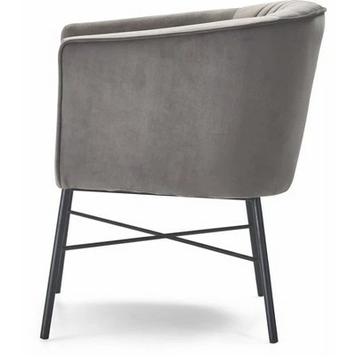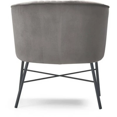When visitors walk into your living room their eyes will be drawn to this stylish and well-constructed chair. Plush velvet fabric upholstery covers the dramatic flared arms and cozy tufted details to enhance the style of any room. Sit back and enjoy the comfort of the soft padded back in a classic curved shape inspired by mid century modern accent chairs. Slim black metal legs create an architectural element that will be a sleek addition to your modern decor. This comfy yet compact armchair is perfect in your living room, bedroom, office, or even as a vanity chair.