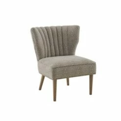 Stay home in style with this barrel chair. Sink effortlessly into comfort with its gentle curved back and sloping arms. Wood frame construction gives a sturdy foundation of support while the durable and stylish fabric upholstery is complimented with paneled detailing. Revive your living space with this versatile tub chair, a great addition to a living room, bedroom or office space.