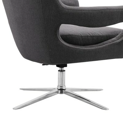 - Warm gray fabric upholstery and brushed stainless steel finish stilt legs