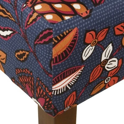 This armless accent chair with a modern blue and pink floral pattern can easily fulfill a variety of roles in any home. Use it as a side chair in the living room, as an accent chair in the bedroom or as an occasional chair in the entryway or home office. When extra guests arrive it can also stand in as a dining chair. With tapered wood legs, a medium firm cushion and a chic floral pattern, this multifunctional chair will be a versatile addition to any home. Easy assembly required.