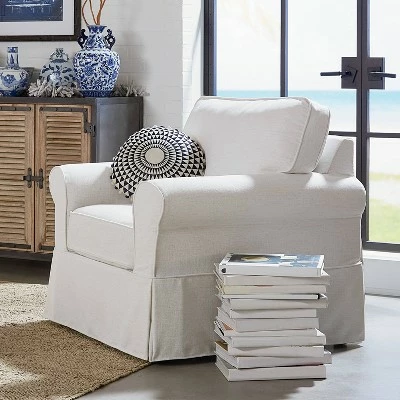 The Ashton Slip Cover Chair is a soothing armchair that complements the cozy sensibilities of the living room. For a peaceful retreat after working all day, this chair easily accommodates your needs. The slipcover cloth is removable and washable with simplicity. Smooth fabric and divine amenities gives your living room a decorative facelift.