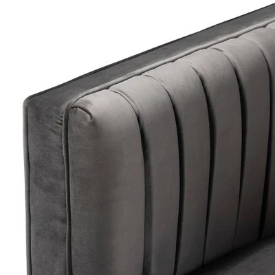 - Upholstered in velvet polyester fabric and padded with foam