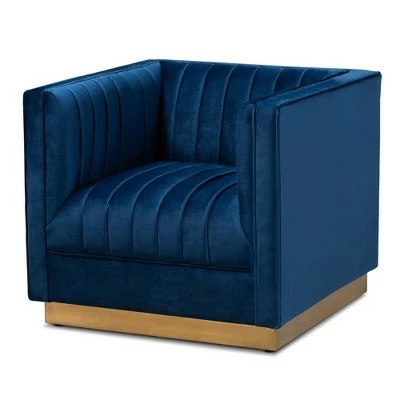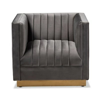 Make a chic statement in your living room with the Aveline chair. Featuring a sleek silhouette, the Aveline is upholstered in a rich velvet fabric that feels exceptionally soft to the touch. Channel tufting highlights the stunning sheen in the velvet, while the striking antique gold finished metal base anchors the glamorous look of this chair. Designed for both style and comfort, the Aveline is generously padded with foam to provide a truly luxurious feel. The Aveline chair is made in China and will arrive fully assembled.
