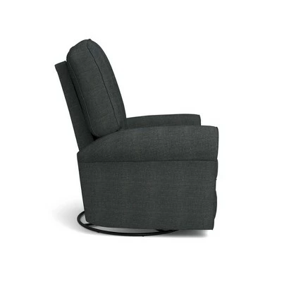 Enjoy the classic style and comfort of the Best Chairs Joaquin Swivel Glider Recliner. The gentle, soothing glide motion will help your baby quickly fall asleep. With a hidden inside handle, easily recline into a full layout position and enjoy some late night snuggles with a special little someone. Our proprietary all-steel mechanism provides a longer and higher leg extension for improved circulation and support. The reclining mechanism is engineered to provide an infinite number of reclining positions, including the TV-watching position. This means the back doesn’t recline until the footrest is all the way up. Comfort is not sacrificed by style. The semi-attached back is blown with high-loft premium pillow fibers, while the seat utilizes a high-density foam cushion for maximum resiliency. The gliding base with a 360-degree swivel feature is a functional and relaxing detail. Have peace of mind knowing all Best Chairs are made in the USA with superior craftsmanship since 1962.