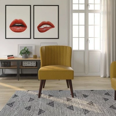 The Novogratz Brittany Accent Chair is the perfect mix of modern and mid-century! Stuffed with comfortable foam cushioning, this armless chair provides both style and cosiness. It is constructed with a sturdy wood frame construction and rich linen upholstery. The Brittany features a ribbed tufted cushioned back design with piping details and slanted solid wood legs. Its armless iconic design provides ample back support to allow you to sit in complete comfort. Available in a wide variety of colors, you have the choice to opt for a pop of color or a more neutral tone. No matter your home décor or your design aesthetic, there is a Novogratz Brittany Accent Chair for you! Pair with the matching Novogratz Brittany Linen Futon for the complete look. Sold separately. These chairs ship in one box and require minimal assembly. All you need are a couple of minutes to complete two easy steps. Sold individually.