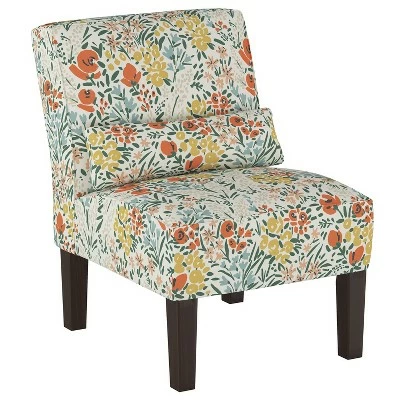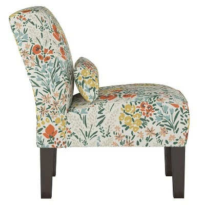 Bring your home to life with the Burke Slipper Chair from Threshold. Gently tapered legs and a botanical pattern upholstery offer bright pops of color that will make this accent chair an easy refresh for your living space. Defined by subtle curves on the back and seat, the sleek shape of this armless side chair tapers into sturdy legs with a rich espresso finish, while the padded back and seat provide soft comfort. Top it with a plush pillow that coordinates with one of the floral hues, or make it an accent piece on its own