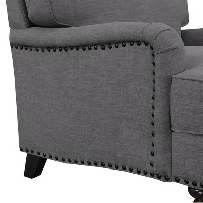 The Picket House Furnishings Cassandra Chair is the perfect addition to your home! This chair comes in a transitional color, making it easy to pair with any existing décor. The chair features slightly rounder arms and detail piping along the cushions. Nail head trim is present along the outer edges and base of the chair, adding extra flair to this already stylish piece. The turnip style feet brings a touch of traditional style. Foam cushion filling will have you never wanting to leave, making it the perfect choice for your living room!