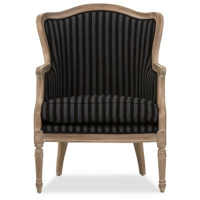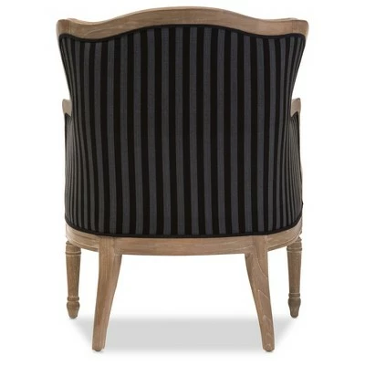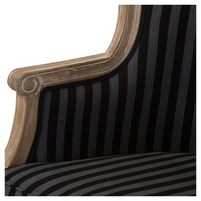 Classic contouring, contrasting leg designs and the comfort of cotton combine to create our Charlemagne Traditional French Accent Chair. Cedar wood frame and distressed brown oak wood finish (with white streaking) celebrate this timeless design. While the black and gray striped upholstery is a bit bolder than the Charlemagne’s mono-toned versions, the color scheme still is surprisingly versatile for accent placement or room positioning. There’s really no comparison to this attention to detail in the discount furniture arena. 36.25″H x 26.8″W x 26″D, SEAT 19.5″H X 23.2″W X 20″D