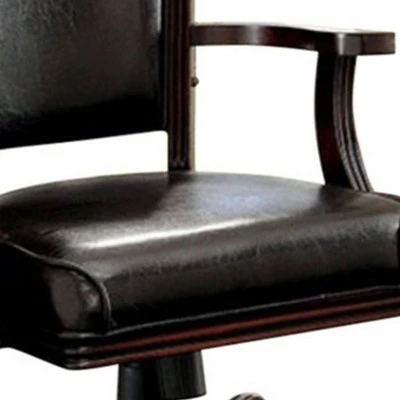 Bring comfort and luxury at your living space with the inclusion of this sophisticated and elegant arm chair. Constructed from solid wood, it features a leatherette seat and backrest, incorporated with a swivel and adjustable height mechanism. It is supported by a 5 star base with casters for mobility.
