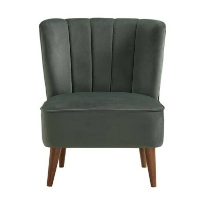 The Picket House Furnishings Corbin Accent Chair features a curved styled back and is upholstered in a soft, velvet fabric. Constructed of plywood and set on four wooden tapered legs. The foam-filled seat cushion provides enhanced comfort for all day lounging. With a contemporary design, this accent chair is perfect for various home designs and color palettes. Easy to handle and ships in one box!