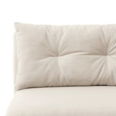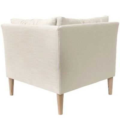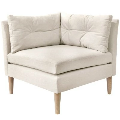 This chic corner chair has a button-tufted, pillow-top seat back that makes for an easy modular look that pairs well with other pieces. Use it in a living room, great room or basement in a grouping of your choice. The hand-upholstered classic linen fabric and elegant wooden cone legs complete the look perfectly.