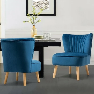 These are our brand new leisure chairs which are perfect for decorating your dining room and offering you a wonderful seating experience. Noble and elegant appearance makes them fit your dining room, living room, restaurant, coffee shop, company, etc. High quality materials and solid rubber wood legs make sure you can use them for years without damage. With softly upholstered seat, you will gain extra comfortableness when you sit on them. Our 2-piece leisure chairs are great additions to any home. Don’t hesitate to buy them! Specification: Color: Green/Blue/Pink. Material: Rubber Wood, Velvet Fabric, Sponge. Overall Dimension: 21.5’’ x 27’’ x 30.5’’ (LxWxH). Seat Size: 19.5″X19.5″ (LXW). Net Weight: 17 lbs. Weight Capacity: 250 lbs. Package Includes:. 2 X Velvet Leisure Chair. 1 X Instruction.