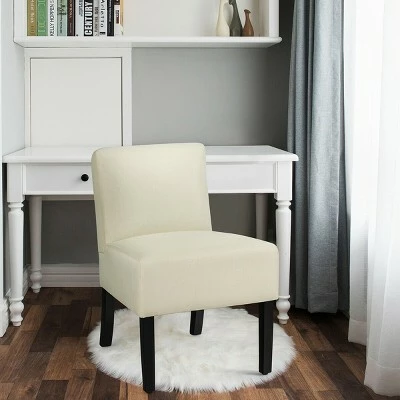 This armless accent chair is your good partner in daily life and provides a great place for you to relax. This fabric upholstered chair with a curved backrest support your back perfectly and release the pressure. Without armrest, you can stretch your body freely. Covered by breathable linen cloth and filled in thick sponge, the chair is comfortable and wear-resistant. The solid construction ensures the stability and load bearing. What’s more, this side chair is versatile and fits for various decorations, so you can use it in living room or dining room. Specification: Color: Beige/Grey. Material: Pine wood, Sponge, Linen. Overall Dimension: 27” x 20.5” x 30” (L x W x H). Net Weight: 18 lb. Load Capacity: 330lb. Package Includes:. 1 x Armless Chair. 1 x Assembly Instruction.