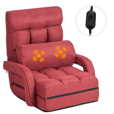 This brand new massage recliner chair is functional for optimal comfort, perfect for reading, sleeping or napping.Padded with recycled cotton and heavy-duty steel frame, this massage recliner chair with linen cover offers you the stable and comfortable relaxing experience to ensure the high resilience and skin-friendly feel. Conforming to ergonomic principle, the massage recliner chair supports your whole body so as to offer utmost comfort. Featuring massage system on the pillow, it is ideal for anxiety and tiredness relief, especially suitable for those working for long sessions.. Specification: Color: BlueRedWhite . Material: steel, recycled cotton, linen cover . Net Weight: 21 lbs . Fully Unfolded Size: 69.5” X 27” X 5.5” (LX WX H) . Package includes: . 1 X Folding Floor Single Sofa .