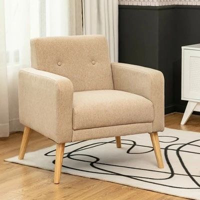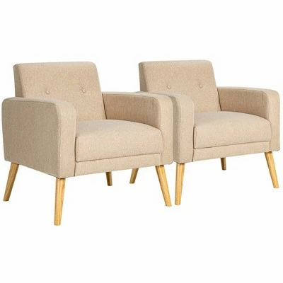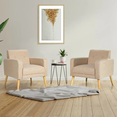 These accent chairs will be your good partner in daily life and provide a great place for you to relax. Constructed with solid pine wood and plywood frame, these chairs are sturdy and durable for long time use. And rubber wood legs with anti-slip foot pads ensure high stability. In addition, the chair features an ergonomic backrest and armrests which can support your back and arms perfectly and release the pressure. Covered by breathable linen fabric and filled with high density sponge, our accent chairs will offer you a comfortable sitting experience. These armchairs with noble and elegant appearance are suitable for bedroom, living room and office. Don’t hesitate to take them home! Specification: Color: Beige / Grey / Navy / Yellow. Material: Rubber Wood, Plywood, Pine Wood, Linen, Sponge. Overall Dimension: 27.5 x 28.5 x 30.5 inch (L x W x H). Seat Size: 20 x 20 inch (L x W). Seat Height: 17.5”. Armrest Height: 23.5”. Maximum Weight Capacity: 265 lbs. Net Weight: 67 lbs. Package Includes:. 2 x Accent Chair. 1 x Instruction.