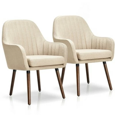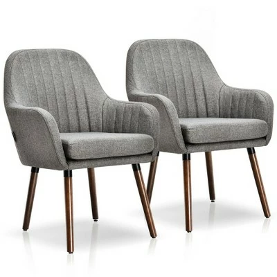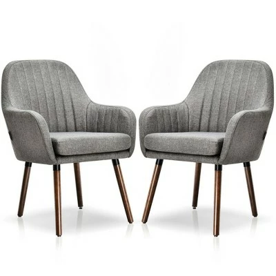 These leisure chairs are built to offer the most comfortable sitting experience. A cushion filled with thick sponge comes with great resilience, which provides soft support and relieves you from long-time sitting. The backrest features a curved design so as to reduce back pain and any discomfort. On both sides, ergonomic armrests comfortably support your hands. Meanwhile, the chair is covered with soft linen fabric, serving to keep you naturally dry and comfortable on sultry days. You also don’t have to worry about its using life and reliability. The char is firmly crafted with rubber wood, which is durable and stable enough for long-time use. The leisure chair set is exactly what you need for leisure time. Specification: Color: Beige/Gray. Material: Rubber Wood + Linen Fabric + Sponge. Product Dimensions: 24.5” x 25” x 34.5” (L x W x H). Cushion Size: 17.5” x 17.5” x 3” (L x W x H). Net Weight: 37.5 lbs. Maximum Weight Capacity: 264 lbs. Package includes:. 2 X Leisure Chair. 1 X User Guide.