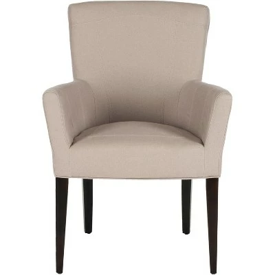 Dapper and delightful, the Dale Armchair brings a soft, tailored touch to any room with taupe linen upholstery and birch wood legs with espresso finish. Whether it’s an intimate dining room, a set for the study or a place for guests to have a cocktail in the living room, any room becomes an instant scene of modern luxury. Care Instructions: To prevent overall soiling, frequent vacuuming or light brushing is recommended. Cushions and pillows should be turned on a weekly basis. Down-filled cushions should be brushed rather than vacuumed. Spot clean, using a mild water-free solvent or dry cleaning product. Only a professional cleaner should undertake a complete overall cleaning. The use of steam or water-based cleaners may cause excessive shrinking or staining.