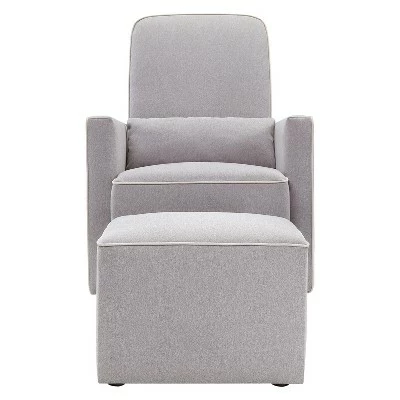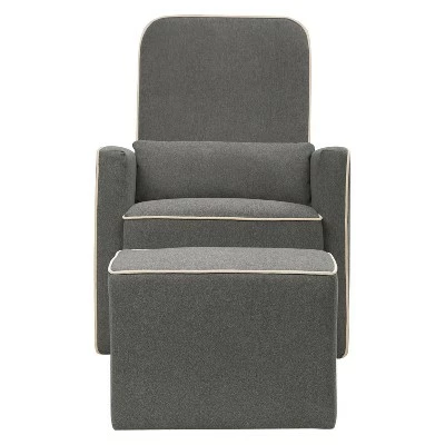 The DaVinci Olive Glider with Ottoman has been thoughtfully designed to meet mom’s and baby’s feeding time needs then transition to your home in the later years. Mom can rest easy in this soft and durable 100% polyester glider that glides forwards and backwards as well as swivels. Bonus upholstered ottoman included to rest those tired feet. Designed with a high back for head and neck support. A matching lumbar pillow is included to offer even more back support when needed.