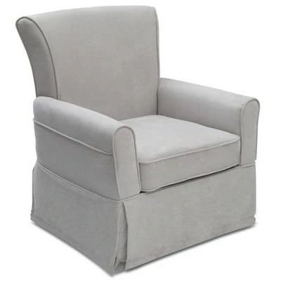 A plush armchair with a supportive back above a gentle swivel and glide mechanism creates a glider you and your baby will love to relax in. Crafted with a sturdy wood frame for lasting strength, the Benbridge Nursery Glider Swivel Rocker Chair from Delta Children is upholstered in easy-to-clean, super-soft microfiber fabric, and will work well in any other room in the house after your little one has outgrown the nursery.