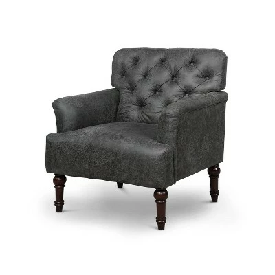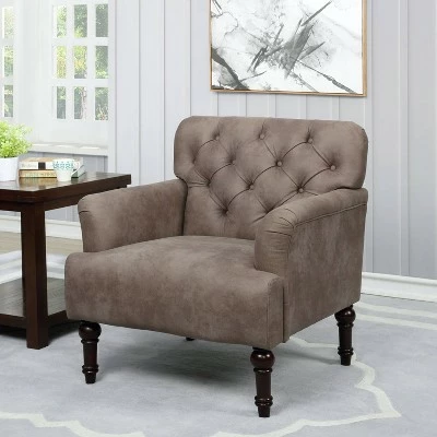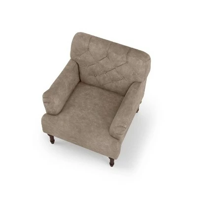 - Deep button tufted back and turned-style legs