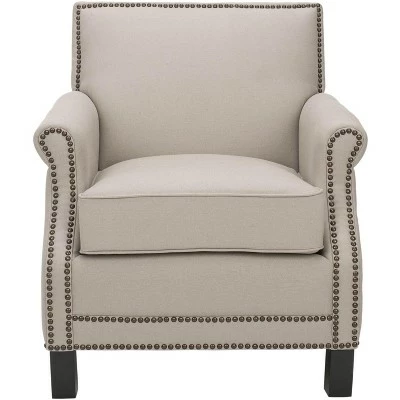The distinguished Easton Chair is a fireside classic, featuring a slender frame, roll arms, and nail head details. This stylish version of a library favorite is revved up with faux leather or fabric upholestry and birch wood legs in an espresso finish. Ideal for curling up with your favorite novel. Care Instructions: To prevent overall soiling, frequent vacuuming or light brushing is recommended. Cushions and pillows should be turned on a weekly basis. Down filled cushions should be brushed rather than vacuumed. Spot clean, using a mild water free solvent or dry cleaning product. Only a professional cleaner should undertake a complete overall cleaning. The use of steam or water based cleaners may cause excessive shrinking or staining.