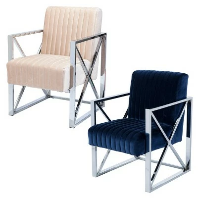 Take a seat in sophisticated style with the Aiden Lane Echidna Velveteen Accent Chair. X-frame details and tufted upholstery add a classic feel to your space, while the chrome finish creates a contemporary look. Slide this modern armchair into your living room to entertain guests, or tuck into your reading nook to relax with a good book. Elegantly blend comfort and style when you bring home this glam-inspired accent chair.