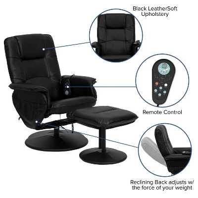 - Product Name: Emma and Oliver Adjustable Massage Recliner/Ottoman – Deep Side Pockets in Black LeatherSoft