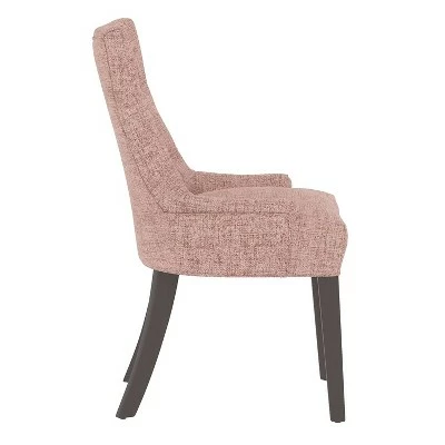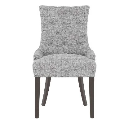 Elegant yet understated style is easy to come by with the Geneva English Armchair from Threshold™. Diamond button tufting adorns the upholstered seat back for traditional influence, which beautifully pairs with the slight wingback silhouette. This gives it an elevated look that remains simple enough to let the piece work well with a variety of spaces and design styles — just change up the aesthetic by adding on an accent pillow or throw blanket that suits your personal style. Slender, tapered legs with a darker finish complete the piece for a minimal yet definitive touch.