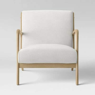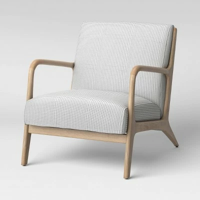 Add a unique seating solution to any space with the vintage-inspired charm of the Esters Wood Armchair from Project 62™. Constructed from wood in a warm distressed finish, this beautiful upholstered armchair features a padded seat and back to keep you comfortable whether you’re reading, watching TV or just hanging out. Whether in your living room or as an accent piece in your entryway, you’ll love the stylish touch this piece brings to your decor.