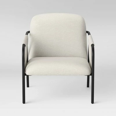 Add both comfort and elegance to your home with this Faison Linen and Metal Sling Accent Chair from Threshold™. Its occasional style and upholstered seating are perfect for adding a laid-back aesthetic to your living space. Its cream color matches all furniture and decor color palettes, and the Faison linen fabric is embellished with a beautiful tattersall checkered texture.