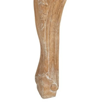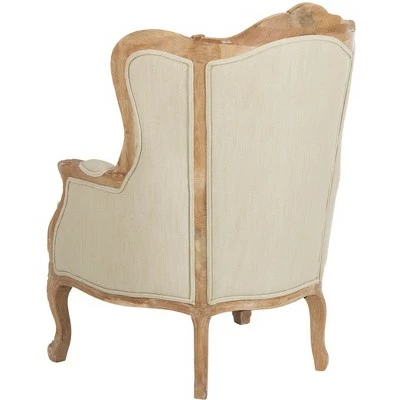 Replete with detailed carving, lightly distressed bleached oak, and traditional camelback frame, the Fallon Wing Chair is a romantic classic. Inspired by the 18th century bergère, this chair conjures images of the grand French chateaux and a refined noble lifestyle. Care Instructions: UPHOLSTERY CARE: To prevent overall soiling, frequent vacuuming or light brushing is recommended. Cushions and pillows should be turned on a weekly basis. Down filled cushions should be brushed rather than vacuumed. Spot clean using a mild, water free solvant or dry cleaning the product. Only a professional cleaner should undertake a complete overall cleaning. The use of steam or water based cleaners may cause excessive shriking or staining.