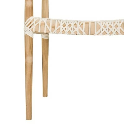 Bring comfort and style to your home with the Fes Armchair from Safavieh. The simply designed chair has interwoven leather strips to create an upholstered seat for you to sit on. The basic hardwood frame chair is just what you need for adding extra seating around your home without taking away from your existing aesthetic.