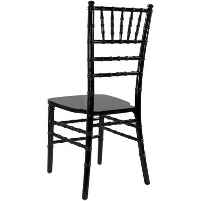 This Black Chiavari Chair is an ideal complement to an elegant banquet, ballroom or wedding event. The hardwood frame on these ballroom chairs is sanded between each of 4 applications of color, creating a rich and durable finish. The wood seat is also reinforced with steel plates for increased structural integrity. Often used as a wedding chair, these chiavari chairs stack 8 high for convenient storage & transport. Additional Features: