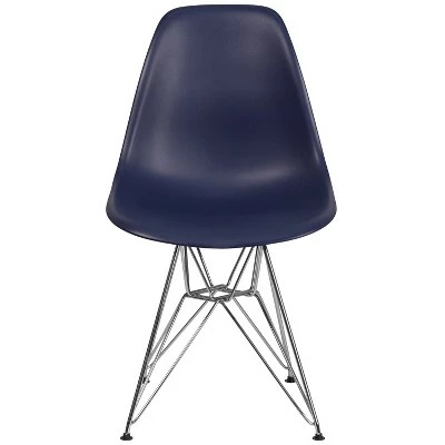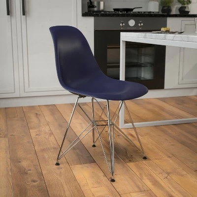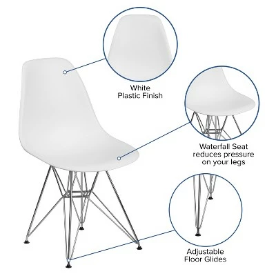 Rejuvenate your home with modern seating that will be a lovely addition as an accent chair in your living room, den, library or sitting room. This chair will add an attractive statement in your kitchen or dining room. Bring your office space or waiting room back to life by using multiple colors throughout your space. The smooth contours of the chair conform to your body allowing you to sit comfortably. The durable matte plastic molded chair and geometric chrome base add an artistic appeal. Additional Features: Chrome Base with Bracing, Adjustable Floor Glides, Designed for Commercial Use