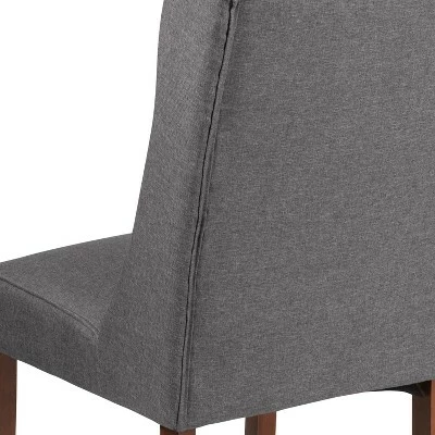 The classic design of this black LeatherSoft upholstered parsons chair makes it a versatile seating option for your home. Button tufted detailing and a mahogany frame finish make them beautiful while high density foam padding and solid hardwood frame construction make them comfortable and durable. LeatherSoft is leather and polyurethane for added softness and durability. Parsons chairs are versatile and can be used not only in the dining room and kitchen but also as a reading chair or extra seating in the living room. The armless design gives the illusion of space which makes them great for small spaces. Vacuum or brush lightly to remove soil. Skirted chair covers can be used to soften their lines for living rooms and bedrooms. A parsons chair can be both formal or casual and are designed to go with almost any decor. Additional Features: Finished Legs, Floor Protector Plastic Glides, Designed for Residential Use Only, LeatherSoft is leather and polyurethane for added softness and durability