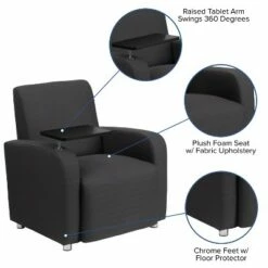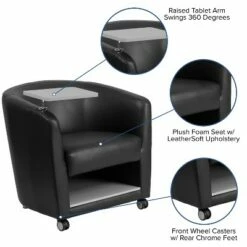 If you’ve ever seen a chair that looks so comfortable you just want to sit down and wrap yourself in it, you’re going love this wing chair and ottoman set. This accent wing back chair and ottoman boast stylish black fabric upholstery that adapts to any decor. Horizontal stitching gives texture and depth to this side chair while the winged sides and CAL 117 fire retardant foam padded seat and back cradle your body and allow you to lounge in comfort. Crafted with a lightweight aluminum frame, this side chair is easy to move but will hold up to 500 pounds as does the fiberglass shell of the ottoman to accommodate most users. 360 degree swivel lets you easily converse with guests and allows you to reach multiple work surfaces without strain. The wing ottoman provides extra seating for overflow guests or a great place to rest your feet. Easily remove spills from this leather accent chair and ottoman set with a solvent based cleaner, no water needed, to keep it looking new. Plastic protector floor glides will protect your flooring from damage and ensure smooth gliding. Both pieces assemble in 10 minutes or less for quick and easy setup. This wing back chair and footstool provide you with a comfy place to land at the end of a long day and will be a good addition to your living room, bedroom, family room, or work space. Additional Features: 4 Point Alloy Base and Protective Floor Glides, Each Piece Assembles within 10 minutes for quick setup, Wing Chair Size: 0″W x 0″D x 0″H; Ottoman Size: 0″W x 0″D x 0″H, LeatherSoft is Leather and Polyurethane for Softness and Durability, Retro look wing accent chair and ottoman set ideal for your living room, den, home office, or professional work space