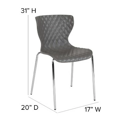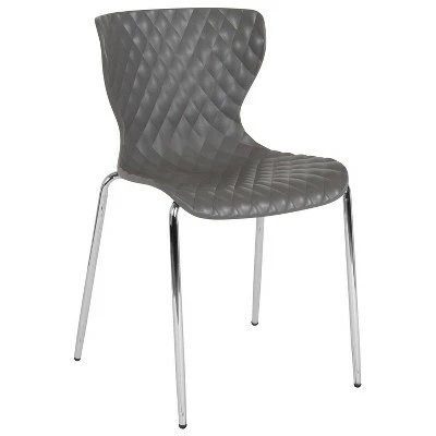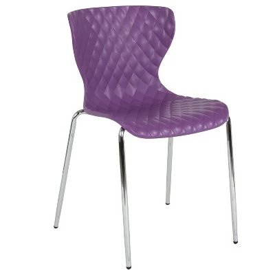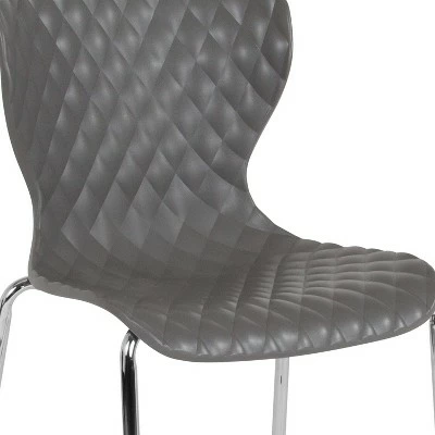 Bring excellent, reliable seating to any modern dining area, waiting room, or office with this black plastic stacking chair. Highlighted with a diamond quilted pattern, this chair offers plenty of style. It’s perfect for use as an accent side chair in waiting areas, cafes, lounges, and casual restaurants. This chair boasts a waterfall seat to help reduce leg strain and provide superior comfort for your guests during their stay. No place is off limits as this quilted plastic stack chair will hold up in a classroom, conference room, restaurant dining room or around the home. Additional Features: Molded Structure, Waterfall Seat reduces pressure on your legs, Chrome Frame Finish