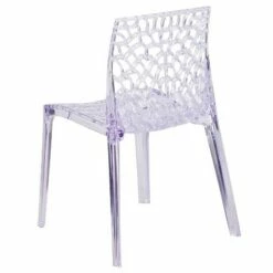 Create a beautiful and artistic statement with this transparent accent chair. You will fall in love with this chair with its intricate cut-out design. The transparency of the chair allows it to take up less space visually as with a solid chair. This chair was crafted with an ingenious combination of lightness and strength. Due to its stacking capabilities, elegant design and use in indoor and outdoor locale this chair can be used in diverse environments. Additional Features: Floor Protector Rubber Glides, Suitable for Outdoor Use, Designed for Commercial Use