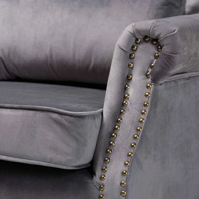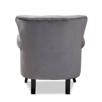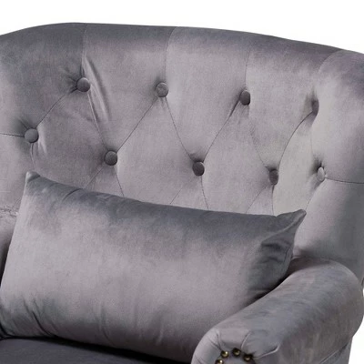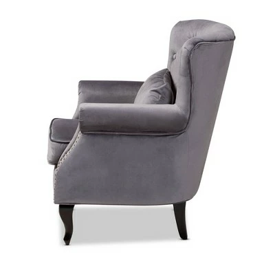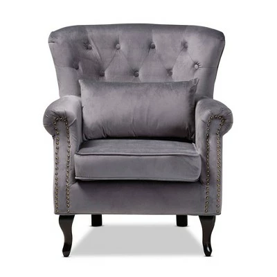 Relax and unwind in elegant style with the timeless design of the Fletcher armchair. Made in China, this chair is comprised of a sturdy wood frame padded with plush foam and upholstered in sumptuous velvet fabric. Curled arms adorned with a nail head trim exude traditional charm while button tufting on the backrest adds a contemporary touch. Requiring assembly, the Fletcher is set on top of cabriole legs to create a graceful outline while providing excellent stability and support. Craft a lovely, relaxing environment with the Fletcher armchair.