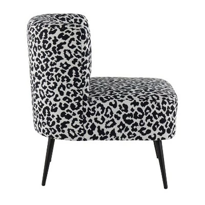 Glam up your sitting area with the beauty of the Fran Slipper Chair. Featuring a sophisticated leopard upholstery that will tie in perfectly with your contemporary decor, this ultra-comfortable padded slipper chair is complemented by tapered black legs. Available in a variety of color combinations, choose the color that ties in with your decor!