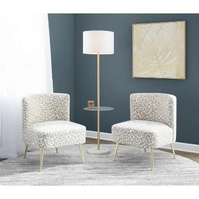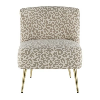 Glam up your sitting area with the beauty of the Fran Slipper Chair. Featuring a sophisticated leopard upholstery that will tie in perfectly with your contemporary decor, this ultra-comfortable padded slipper chair is complemented by tapered gold legs. Available in a variety of color combinations, choose the color that ties in with your decor!