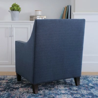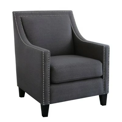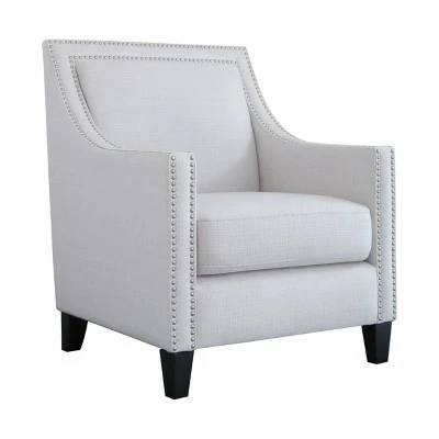 Complete the look of your living room or bedroom with the Geneva Nailhead Accent Chair from Abbyson Living. This transitional style accent chair is wrapped in a durable polyester fabric upholstery that resembles linen for a modern vintage aesthetic, and features a semi-firm cushion that provides comfort and support. Dual nailhead trim provides a stunning border accent, and solid dark finished birch wood legs add a dose of natural charm. Perfect for modern, contemporary, and transitional home styles, this neutral accent chairs offers subtle details that will stand out beautifully in any room of your home.