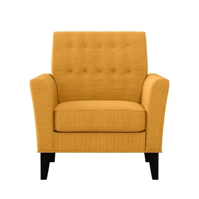Offering an updated take on traditional design, this decidedly modern arm chair with flared arms exudes great transitional style. Covered in a linen-like fabric, the square back is button tufted for a tailored touch. This arm chair is perfectly proportioned to sit just about anywhere, making it a good option for a living room, office or den.
