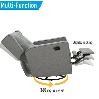 This HomCom swivel gliding recliner chair is the perfect addition to any room in your home. Clean lines and polyester linen upholstery give this recliner a modern and chic look that will added style and class. Padded with high density sponge and over-sized backrest with a stretchable footrest for extraordinary comfort. This chair can recline and features a 360-degree swivel, so you can sit upright to work, lounge back to read or watch TV, or simply take a nap in the afternoon sun.