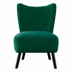 Give your bedroom a retro makeover with the fresh and funky Modern Velvet Accent Upholstered Chair from Homelegance. This package includes 2 chairs.This smooth velvet chair adds a vibrant pop of color and chic style to your home decor. With a rich emerald green color and dark brown finished wood legs, this button accent chair will be the center of attention in any room in the house.Spunky and stylish, this upholstered chair features a solid wood and plywood frame for sturdy construction and can support up to 300 pounds. This stunning velvet chair is also super comfy with attached back and seat cushions and foam padding over the pocket coils so you can lounge carefree.Indulge in the charming color and retro style of Homelegance’s Modern Velvet Accent Upholstered Chair and transform your bedroom into a 70’s dream.